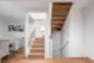 U-formos ąžuoliniai laiptai su šonine laiptasija. Detalės nudažytos balta spalva, suteikiančia jūsų namams šviesumo ir elegancijos.