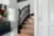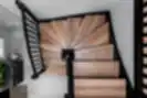 Klasikiniai laiptai, tampantys pagrindinio aukšto akcentu. Juodos detalės subtiliai pabrėžia vientiso uosio medžio struktūrą pakopose ir priešpakopiuose.